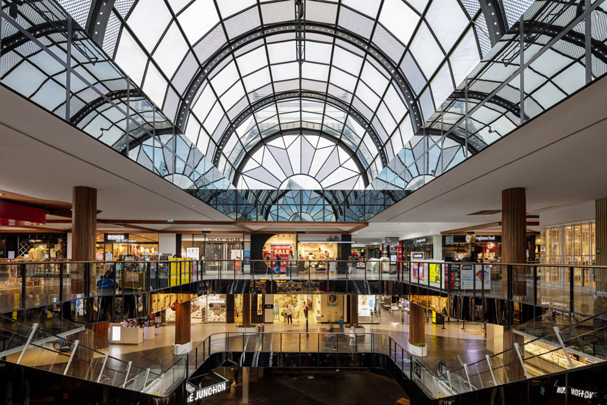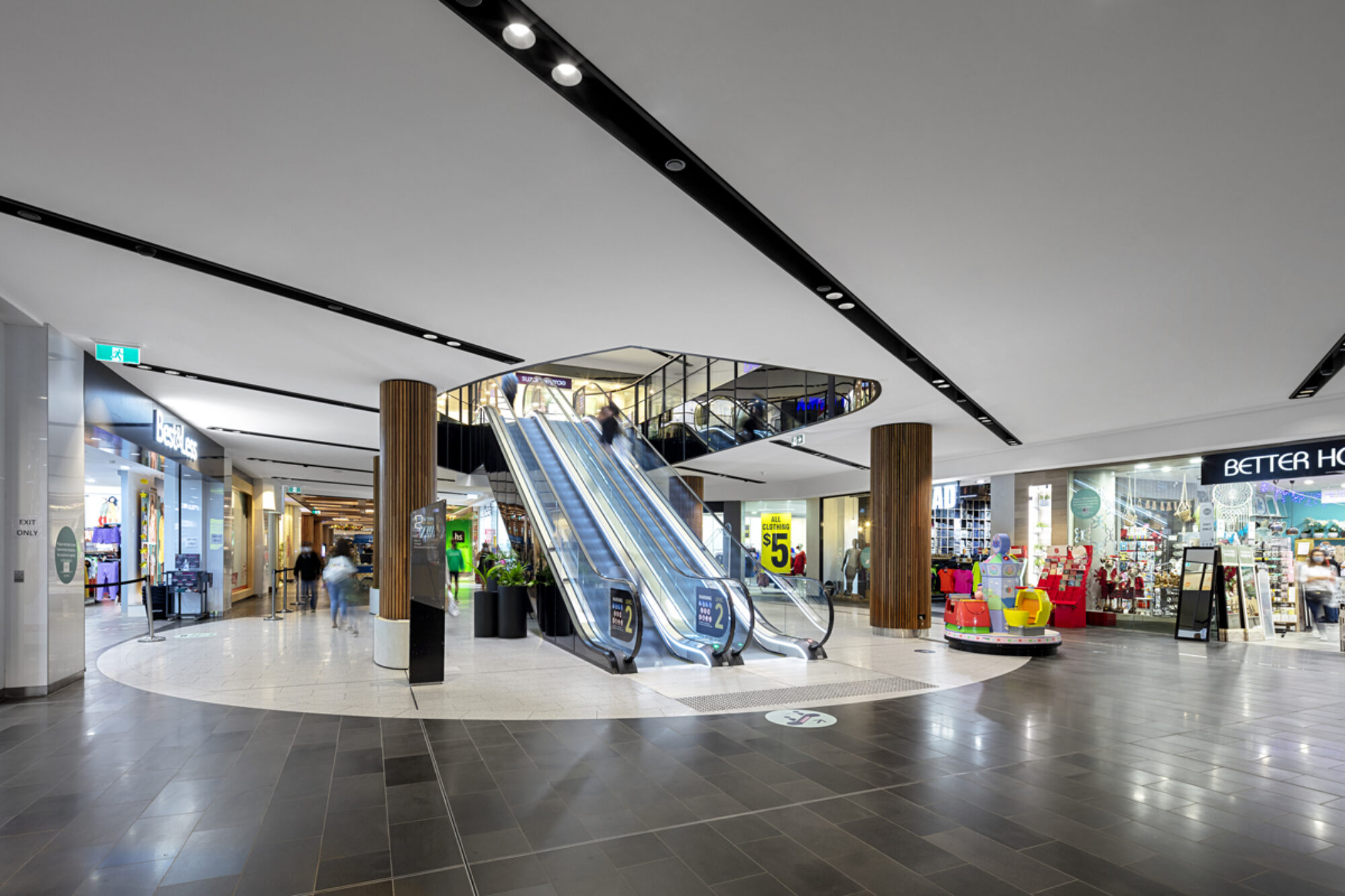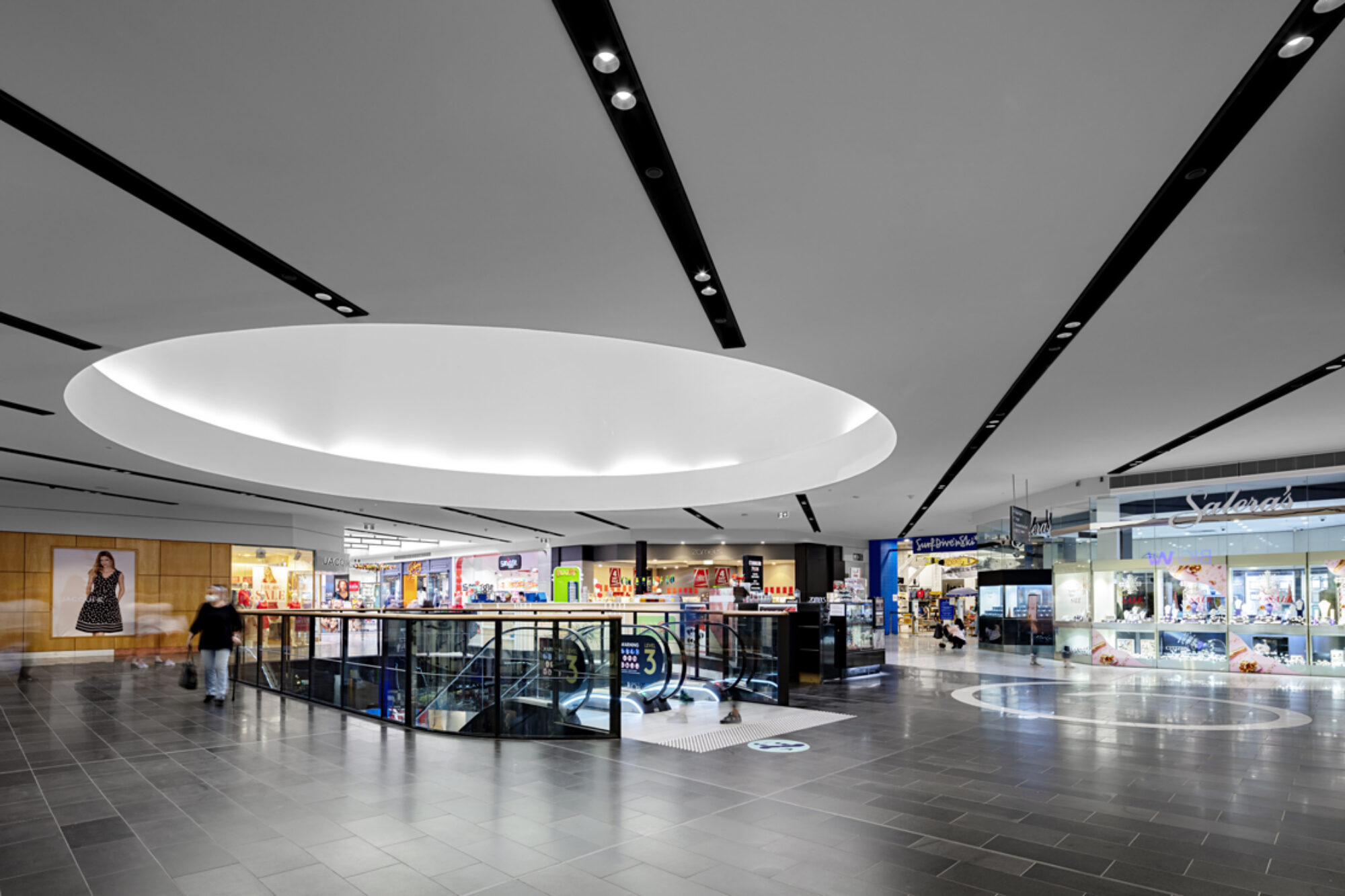 The project involved the aesthetic upgrade of over 10,000sqm of public shopping malls over levels 2 & 3. The scope of work in each zone included the replacement of all floor finishes, ceiling and soffit treatments, structural modifications to voids, upgrade of balustrades, feature lighting, service modifications and replacement of vertical transportation.